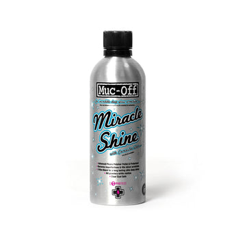No nos andemos con rodeos, usted quiere un abrillantador y protector de alta calidad que proporcione un brillo profundo y lujoso a su carrocería o cuadro, Muc-Off Miracle Shine es el producto para ese trabajo. Nuestro Miracle Shine no sólo le proporciona unos resultados de brillo increíbles, sino que también cubre las zonas tratadas con una capa protectora microscópica contra los contaminantes atmosféricos, gracias a su tecnología de polímeros fluorados. Nuestro lujoso abrillantador también incluye cera de carnauba, así como otros ingredientes muy avanzados, para que su pintura sea tratada con cariño y respeto. Así que si quiere que el acabado de su pintura brille como si fuera nuevo, que el agua se escurra furiosamente y que el coche sea más fácil de limpiar la próxima vez, Muc-Off Miracle Shine es el producto para usted.
