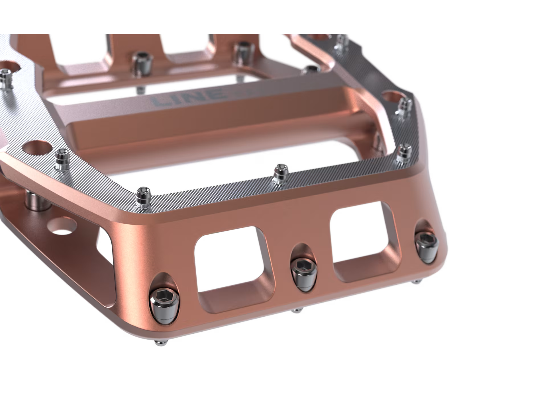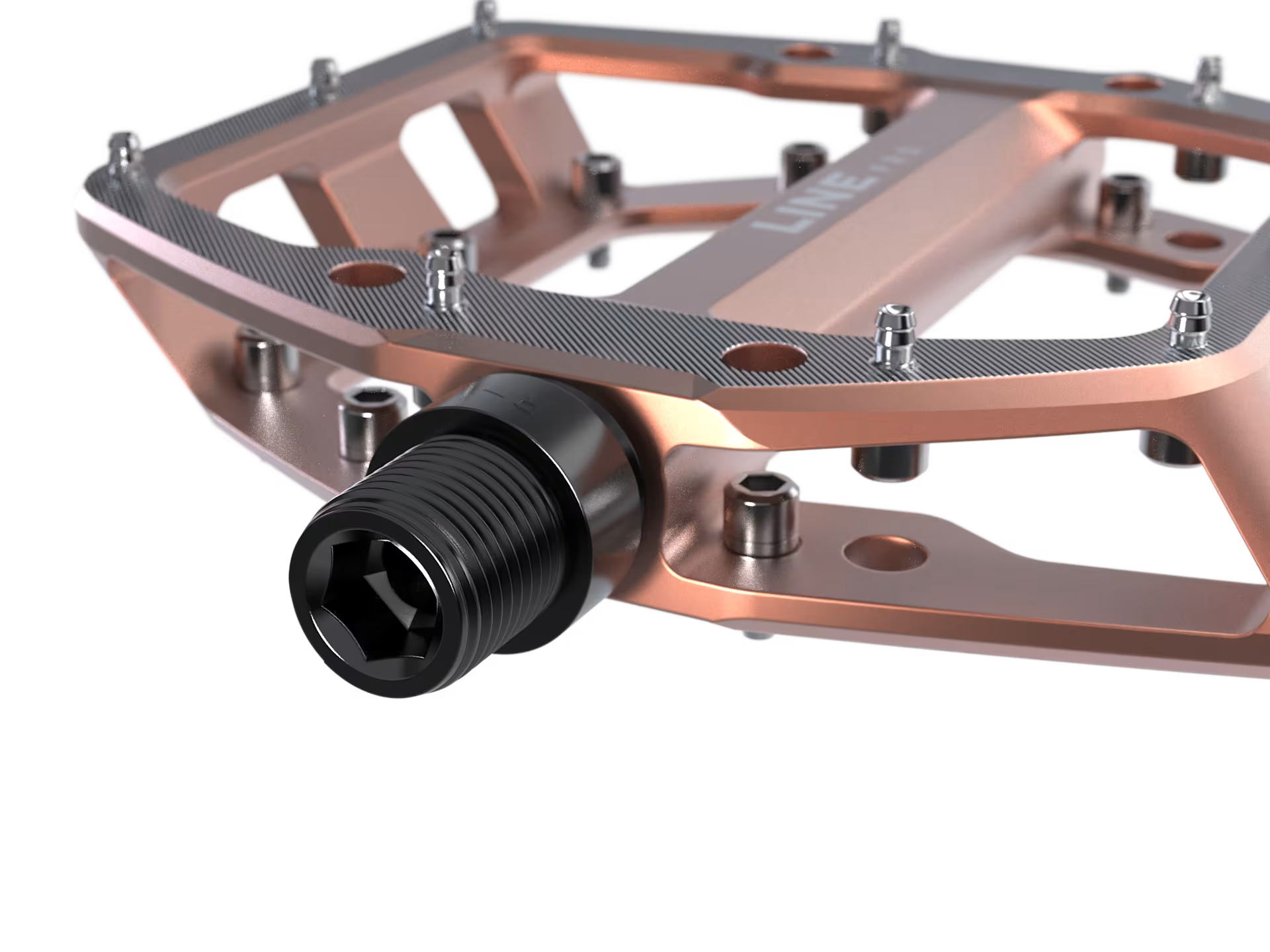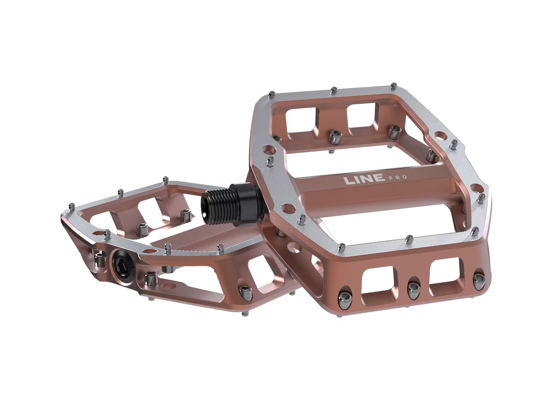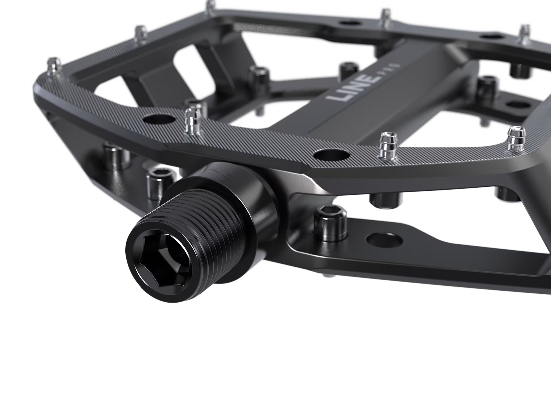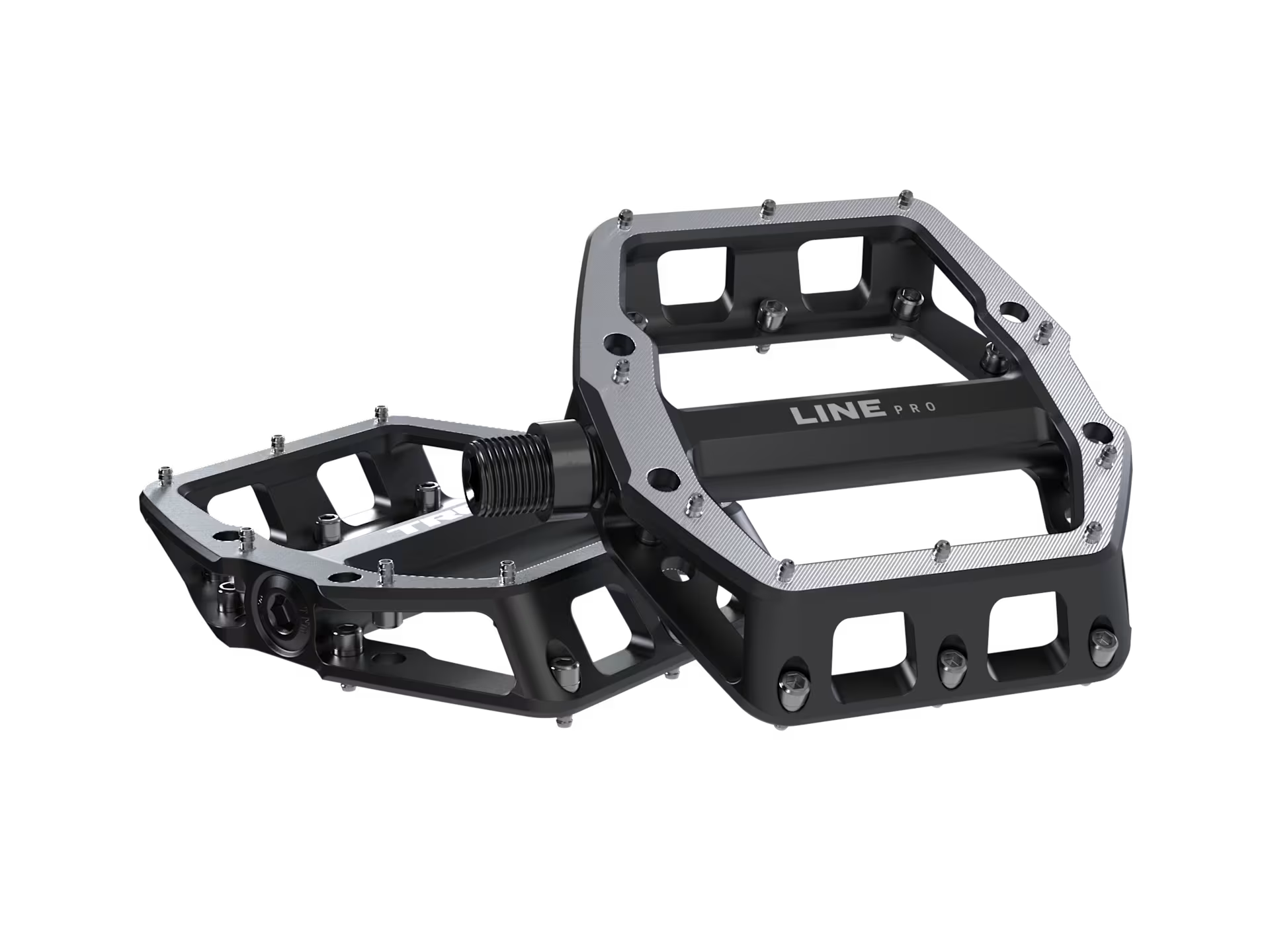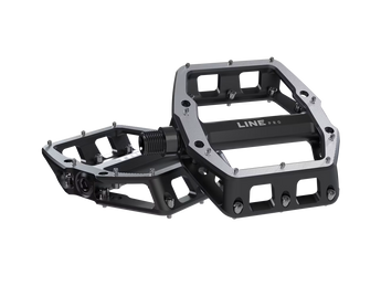 Los Pedales Planos Line Pro tienen una estructura cóncava y una plataforma sólida con pines de tracción significan que cada vez que colocas tu pie, tu zapato se mantiene en su lugar. Levanta el pie en cualquier momento sabiendo que puedes volver a ponerlo en el pedal y encontrar una posición firme.